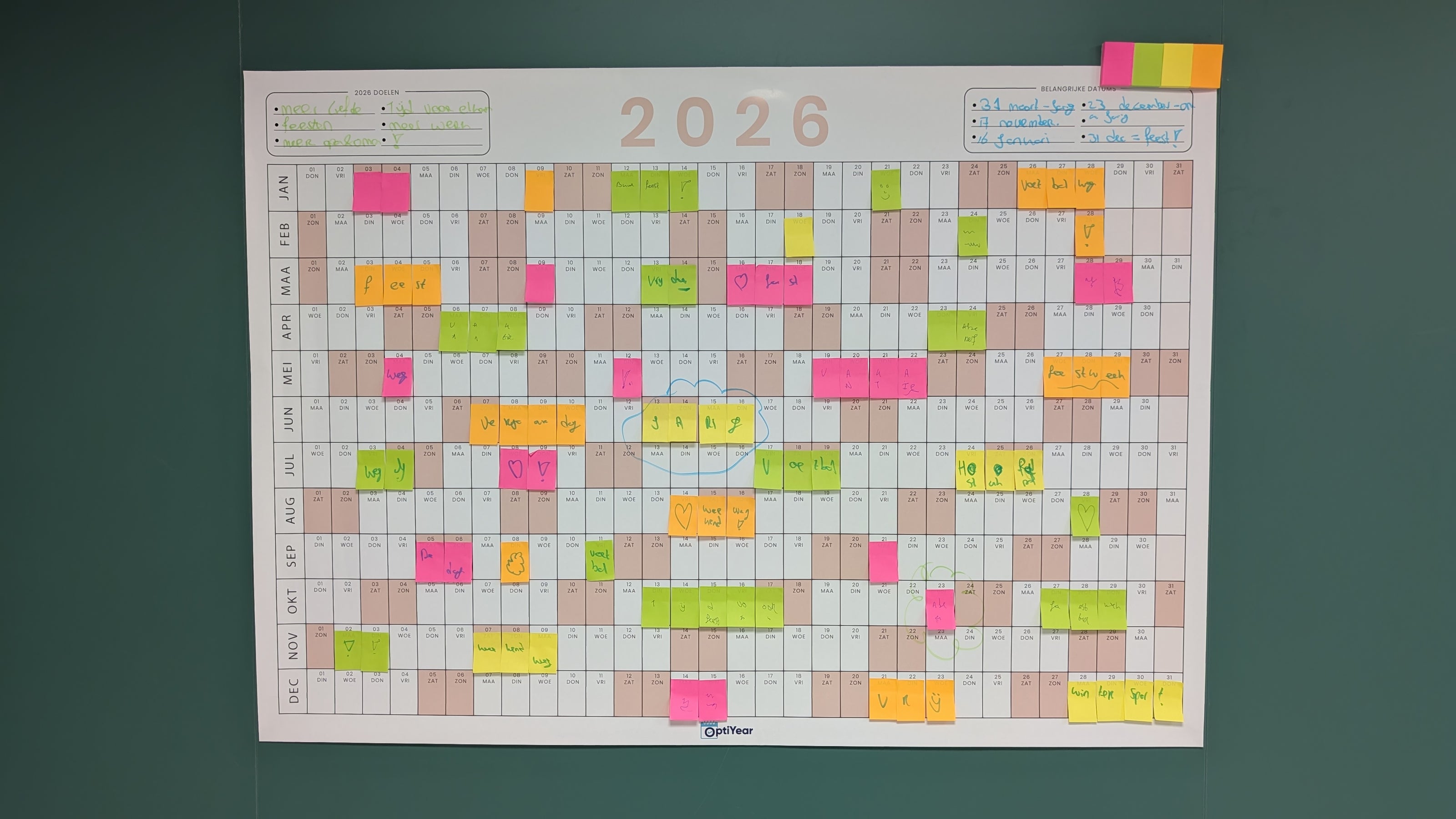 Zeker! Bij elke kalender ontvang je een set kleurrijke post-its, perfect om afspraken en notities overzichtelijk te markeren.